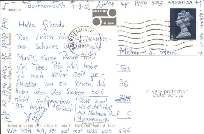 11777714 old postcard Bournemouth Square and Town Centre Monument Doppeldeckerbus postalisch gelaufen Erhaltung siehe scans KatCode: