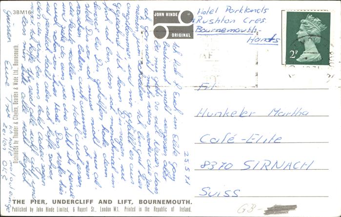 11474725 old postcard Bournemouth Strand Pier Undercliff Lift postalisch gelaufen Erhaltung siehe scans KatCode: