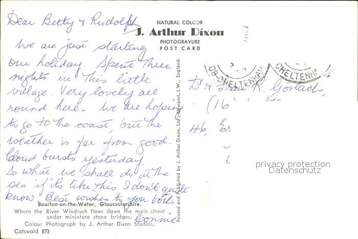 old postcard Bourton-on-the-Water Gloucestershire River Windrush Stone Bridges postalisch gelaufen Erhaltung siehe scans