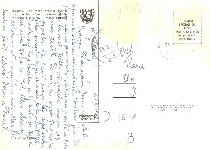 old postcard Bouzov Praha Schloss Denkmal Hotel postalisch gelaufen Erhaltung siehe scans [KathaD81]