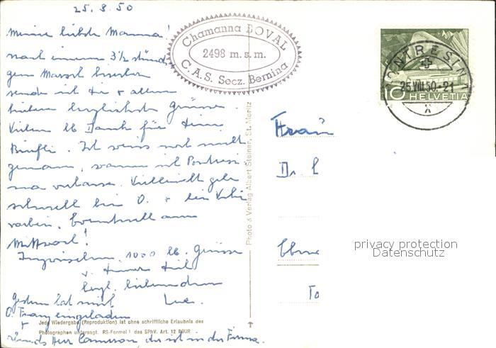 11853569 alte Postkarte Bovalhuette mit Persgletscher postalisch gelaufen Erhaltung siehe scans KatCode: 11470360710116