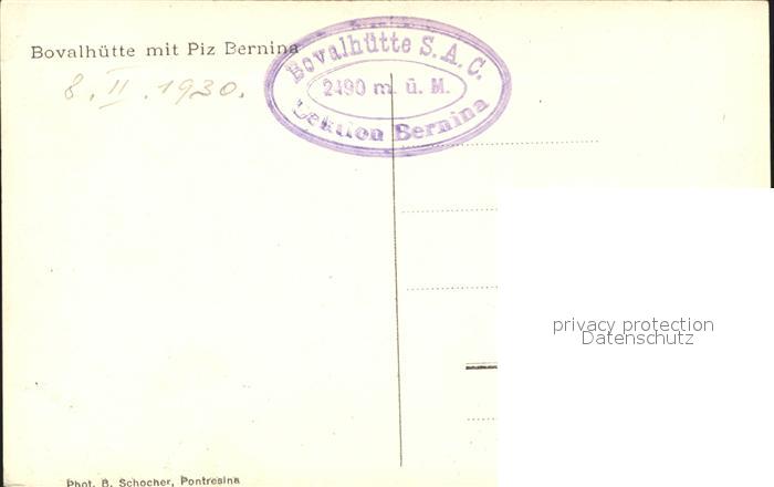 11853293 Bovalhuette mit Piz Bernina postalisch nicht gelaufen Erhaltung siehe scans KatCode: 11470360710116