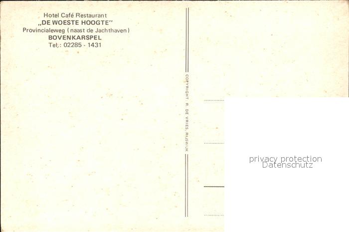 Bovenkarspel Hotel Restaurant De Woeste Hoogte postalisch nicht gelaufen Erhaltung siehe scans