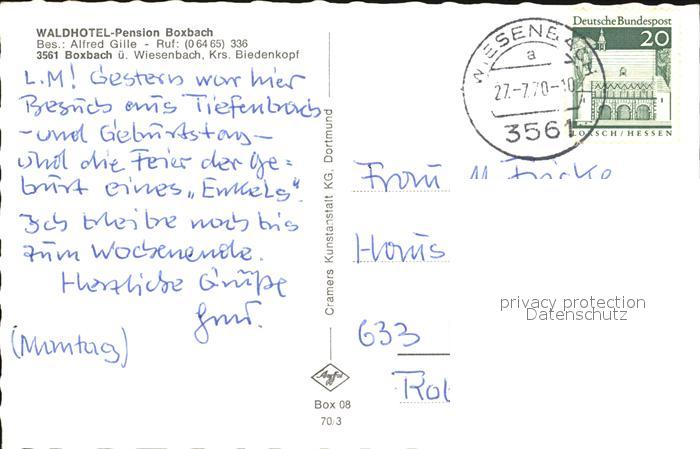 72392833 alte Postkarte Boxbach Waldhotel Pension Boxbach postalisch gelaufen Erhaltung siehe scans KatCode: 11110009271125