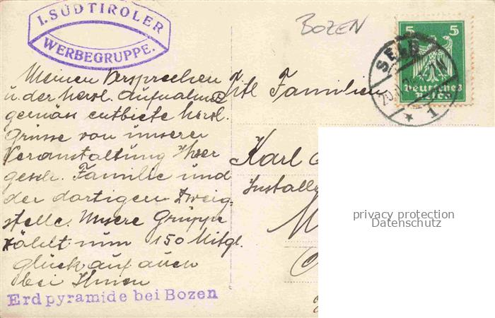 74078809 old postcard Bozen BOLZANO Suedtirol IT Erdpyramide postalisch gelaufen Erhaltung siehe scans [WerneD78] KatCode: 11240