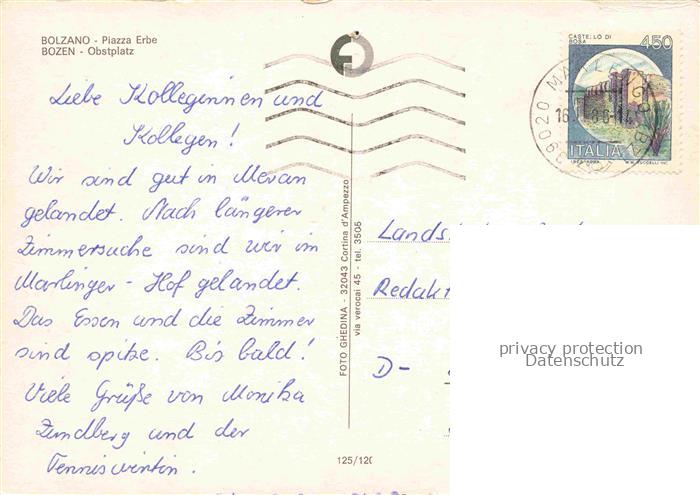 74033795 old postcard Bozen BOLZANO Suedtirol IT Piazza Erbe Obstplatz Markt postalisch gelaufen Erhaltung siehe scans [FriedD77] KatCode: 11240