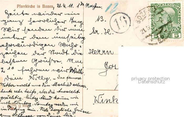 Bozen S?dtirol Pfarrkirche K?nstlerkarte R. A. H?ger
