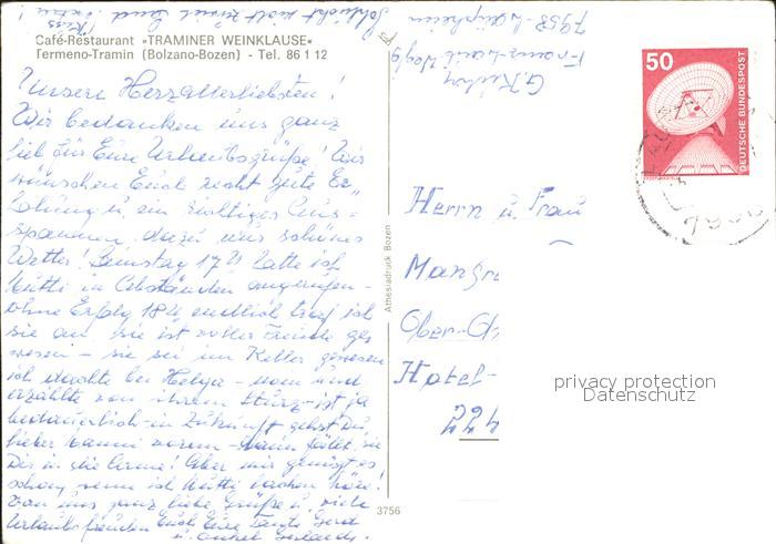old postcard Bozen Suedtirol Cafe Restaurant Traminer Weinklause postalisch gelaufen Erhaltung siehe scans