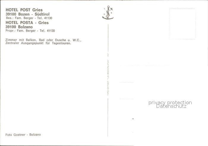 Bozen Suedtirol Hotel Post Gries postalisch nicht gelaufen Erhaltung siehe scans