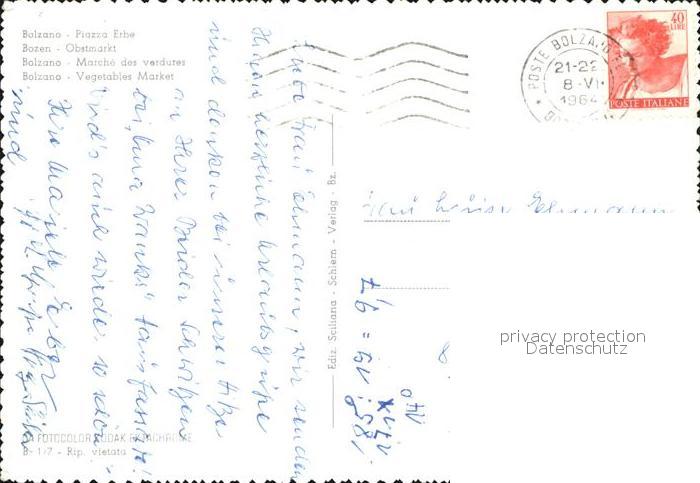 old postcard Bozen Suedtirol Obstmarkt postalisch gelaufen Erhaltung siehe scans [AndreD76 kt119box]