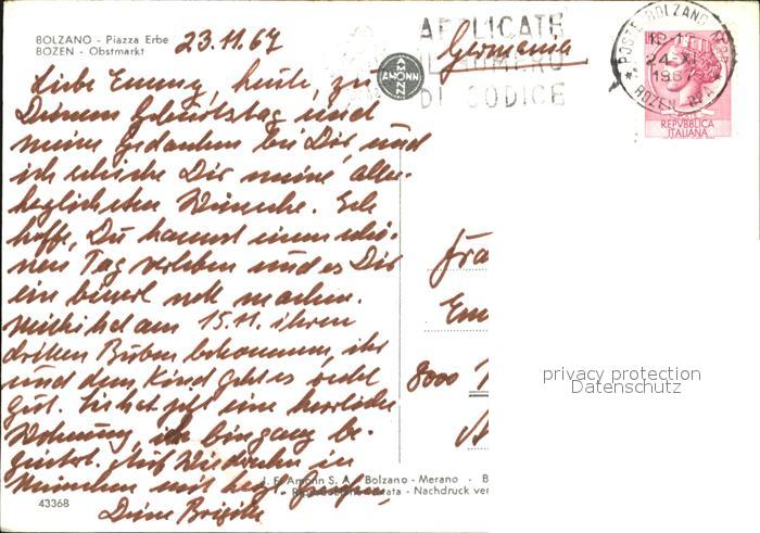 old postcard Bozen Suedtirol Obstmarkt Piazza Erbe postalisch gelaufen Erhaltung siehe scans [FriedD77]