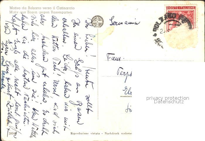 old postcard Bozen Suedtirol Panorama mit Rosengarten postalisch gelaufen Erhaltung siehe scans