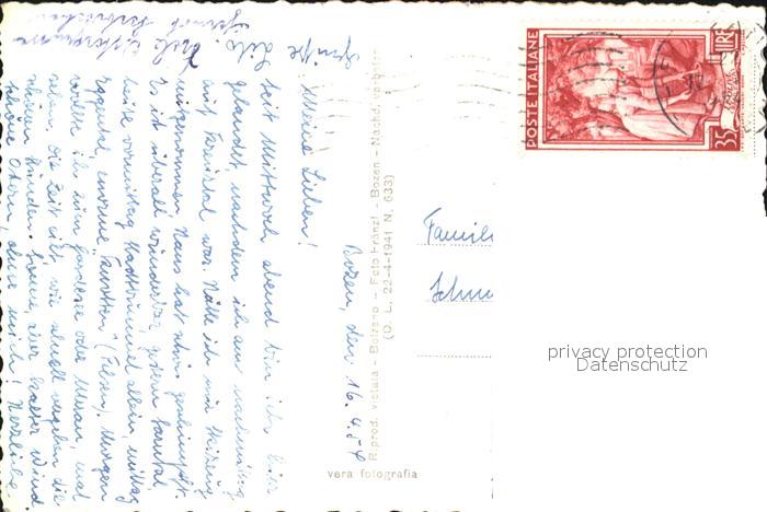 old postcard Bozen Suedtirol Panorama mit Rosengarten Dolomiten postalisch gelaufen Erhaltung siehe scans