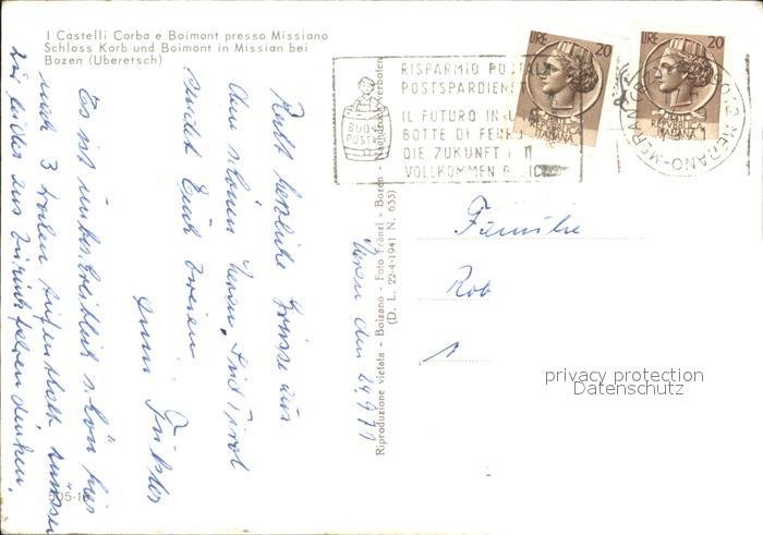 old postcard Bozen Suedtirol Schloss Korb und Boimant postalisch gelaufen Erhaltung siehe scans