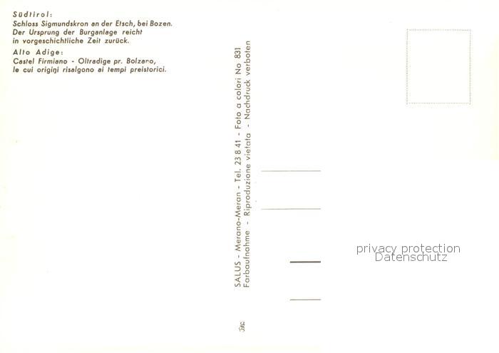 Bozen Suedtirol Schloss Sigmundskron an der Etsch postalisch nicht gelaufen Erhaltung siehe scans [WerneD78]