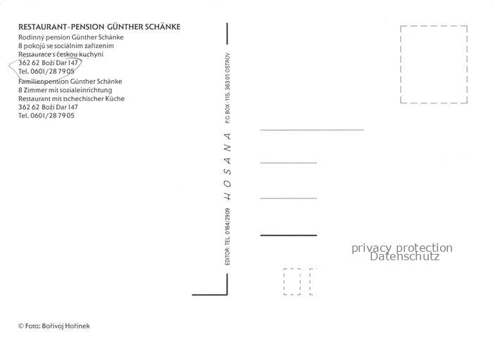 74009520 Bozi Dar Gottesgab CZ Pension Guenther Schaenke Gastraeume Winteridyll postalisch nicht gelaufen Erhaltung siehe scans [WerneD78] KatCode: 11520