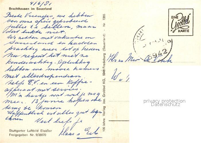 73311314 alte Postkarte Brachthausen Fliegeraufnahme postalisch gelaufen Erhaltung siehe scans [KathaD81] KatCode: 11110005966016