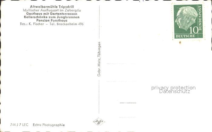 Brackenheim Altweibermuehle Tripsdrill Gasthaus Gartenterrassen Pension Forsthaus postalisch nicht gelaufen Erhaltung siehe scans