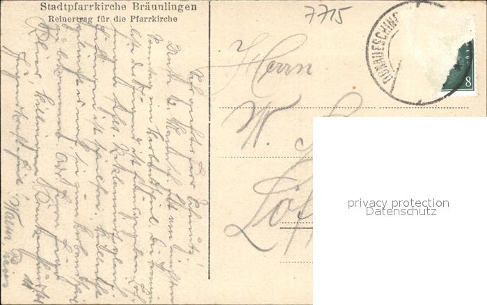 71840015 alte Postkarte Braeunlingen Pfarrkirche postalisch gelaufen Erhaltung siehe scans KatCode: 11110008326006