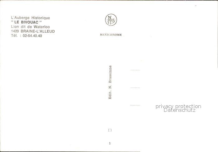 71914921 Braine l Alleud L Auberge Le Bivouac postalisch nicht gelaufen Erhaltung siehe scans KatCode: 11070025002784