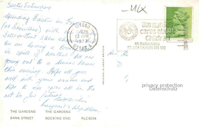 74012100 old postcard Braintree Essex UK The Gardens Bank Street Bocking End postalisch gelaufen Erhaltung siehe scans [FriedD77] KatCode: 11570UKH3H33UC