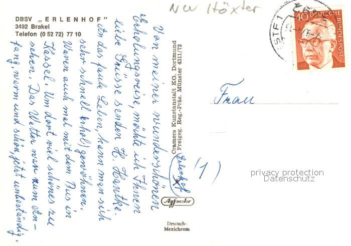 73019476 alte Postkarte Brakel Westfalen Erlenhof Fliegeraufnahme postalisch gelaufen Erhaltung siehe scans [NatalD47] KatCode: 11110005762016