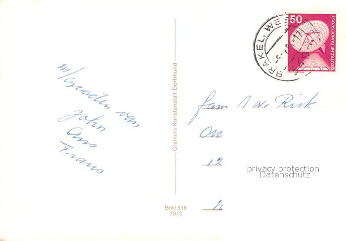 73311325 alte Postkarte Brakel Westfalen Hinnenburg Kuranlagen Markt Feriendorf Kurhotel Kloster Brede postalisch gelaufen Erhaltung siehe scans [KathaD81] KatCode: 11110005762016