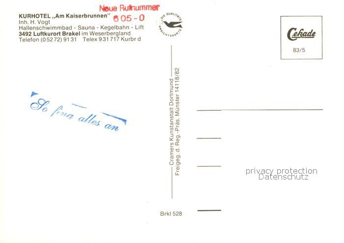 73101474 Brakel Westfalen Kurhotel Am Kaiserbrunnen Fliegeraufnahme postalisch nicht gelaufen Erhaltung siehe scans [WerneD78] KatCode: 11110005762016