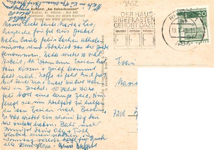 73943961 alte Postkarte Brakel Westfalen Kurhotel Am Kaiserbrunnen Teich postalisch gelaufen Erhaltung siehe scans [FriedD77] KatCode: 11110005762016