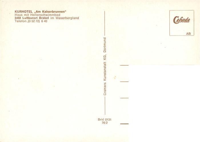 73881606 Brakel Westfalen Kurhotel Am Kaiserbrunnen postalisch nicht gelaufen Erhaltung siehe scans [WerneD78] KatCode: 11110005762016