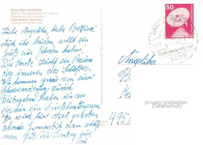 72888024 alte Postkarte Brakel Westfalen Schloss Gehrden postalisch gelaufen Erhaltung siehe scans [AndreD76] KatCode: 11110005762016