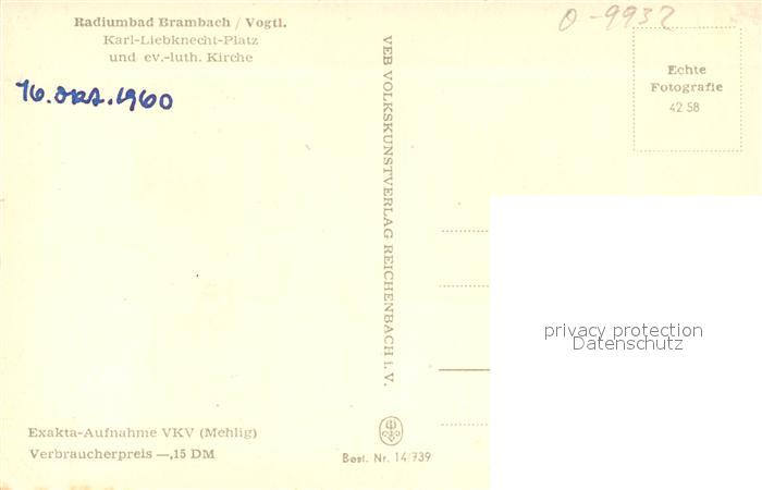 43346465 Brambach Bad Karl Liebknecht Platz Kirche postalisch nicht gelaufen Erhaltung siehe scans [KathaD81] KatCode: 11110014178040