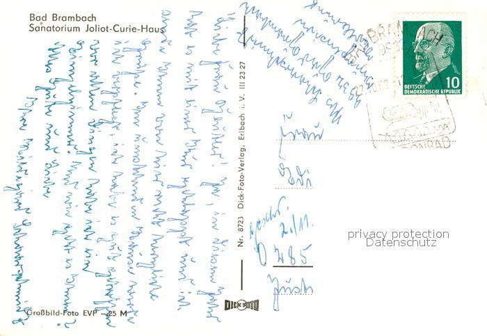 73075936 alte Postkarte Brambach Bad Sanatorium Joliot Curie Haus postalisch gelaufen Erhaltung siehe scans [KathaD81] KatCode: 11110014178040