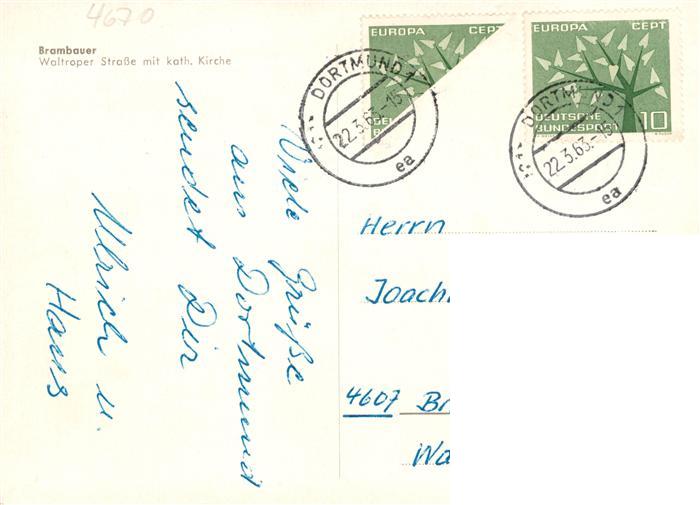 73872211 alte Postkarte Brambauer Waltroper Strasse mit katholischer Kirche postalisch gelaufen Erhaltung siehe scans [FriedD77] KatCode: 11110005978024