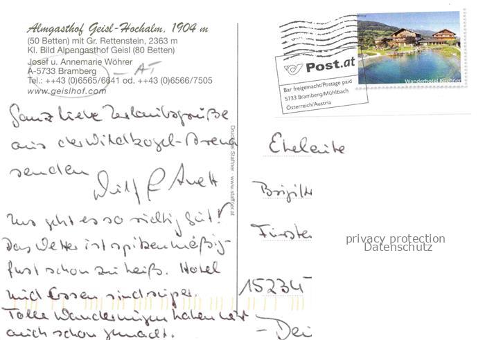 74044188 alte Postkarte Bramberg Habachtal Wildkogel AT Almgasthof Geisl Hochalm Gondelteich postalisch gelaufen Erhaltung siehe scans [WerneD78] KatCode: 11390322050601