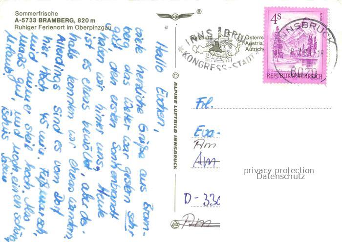 74043663 alte Postkarte Bramberg Habachtal Wildkogel AT Panorama Ferienort im Oberpinzgau Sommerfrische postalisch gelaufen Fliegeraufnahme Erhaltung siehe scans [FriedD77] KatCode: 11390322050601