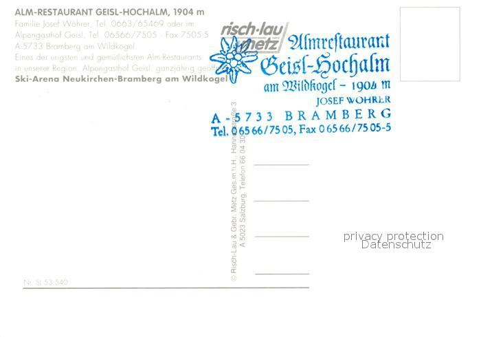73598732 Bramberg Wildkogel Alm-Restaurant Geisl-Hochalm postalisch nicht gelaufen Erhaltung siehe scans [PaolaD17] KatCode: 11390322050601