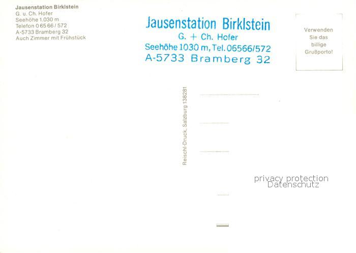 73228431 Bramberg Wildkogel Jausenstation Birklstein Alpenpanorama postalisch nicht gelaufen Erhaltung siehe scans [FriedD77] KatCode: 11390322050601