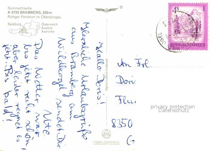 72633430 alte Postkarte Bramberg Wildkogel Sommerfrische Ferienort Oberpinzgau Alpenpanorama Fliegeraufnahme postalisch gelaufen Erhaltung siehe scans [FriedD77] KatCode: 11390322050601