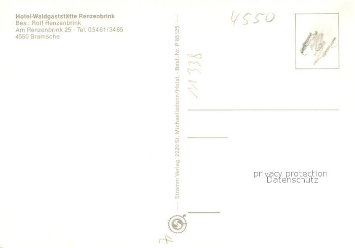 73641593 Bramsche Hase Hotel Waldgaststaette Renzenbrink Fremdenzimmer Festsaal Teich postalisch nicht gelaufen Erhaltung siehe scans [FriedD77] KatCode: 11110003459014