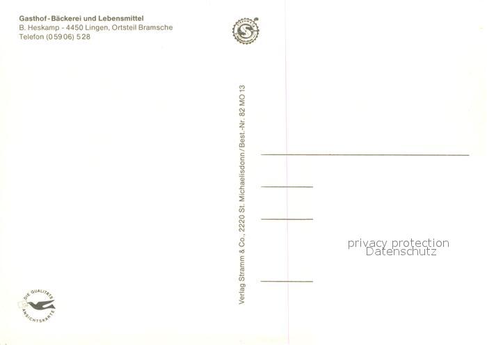 73726807 Bramsche Lingen Gasthof Baeckerei und Lebensmittel Kirche postalisch nicht gelaufen Erhaltung siehe scans [FriedD77] KatCode: 11110003454032