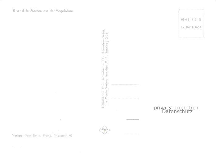 74121029 Brand AACHEN NRW aus der Vogelschau postalisch nicht gelaufen Fliegeraufnahme Erhaltung siehe scans [FriedD77] KatCode: 11110005313000