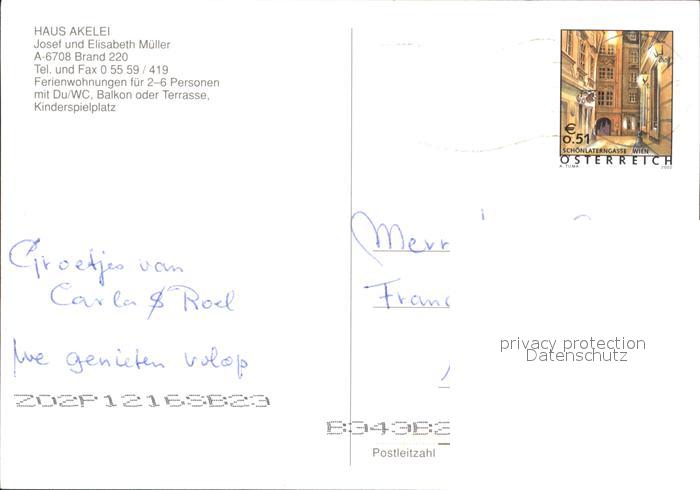 71981934 alte Postkarte Brand Bludenz Haus Akelei postalisch gelaufen Erhaltung siehe scans KatCode: 11390341080103