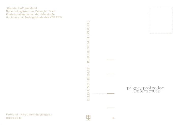 73654437 Brand-Erbisdorf Brander Hof am Markt Erholungszentrum Erzengler Teich Kinderkombinat Jahnstrasse Hochhaus des VEB PSW postalisch nicht gelaufen Erhaltung siehe scans [WerneD78] KatCode: 11110014177030