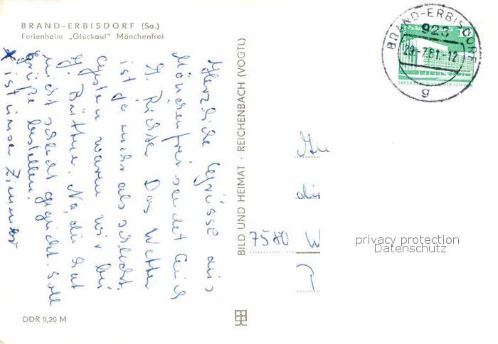 72681564 alte Postkarte Brand-Erbisdorf Ferienheim Glueckauf Moenchenfrei postalisch gelaufen Erhaltung siehe scans [LiesaD40] KatCode: 11110014177030