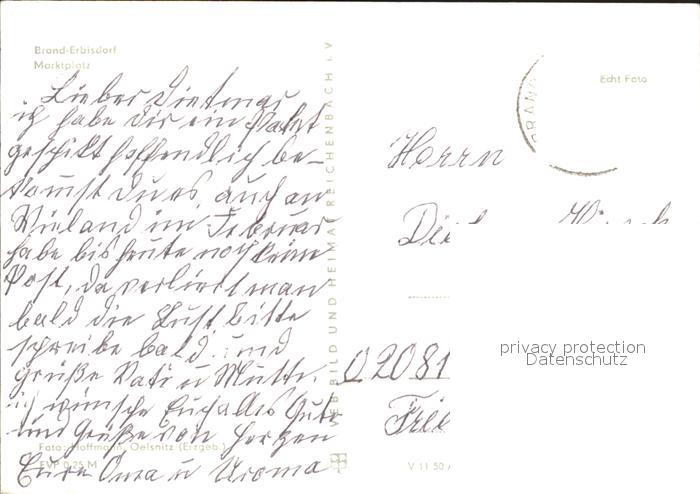 71944440 alte Postkarte Brand-Erbisdorf Marktplatz Brunnen postalisch gelaufen Erhaltung siehe scans KatCode: 11110014177030