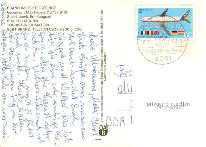 73673394 alte Postkarte Brand Fichtelgebirge Motiv mit Blick zur Kirche Hauptstrasse Freibad Fliegeraufnahme postalisch gelaufen Erhaltung siehe scans [FriedD77] KatCode: 11110006631012