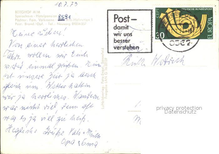 72251608 alte Postkarte Brand Oberpfalz Fliegeraufnahme Berghof Alm postalisch gelaufen Erhaltung siehe scans KatCode: 11110009377113