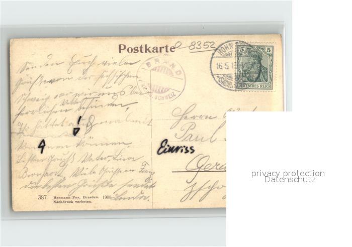 42228022 alte Postkarte Brand Saechsische Schweiz Hotel postalisch gelaufen Erhaltung siehe scans KatCode: 11110014287160