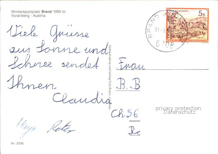72531429 alte Postkarte Brand Vorarlberg Gesamtansicht postalisch gelaufen Erhaltung siehe scans [AndreD76 kt113box] KatCode: 11390341080105